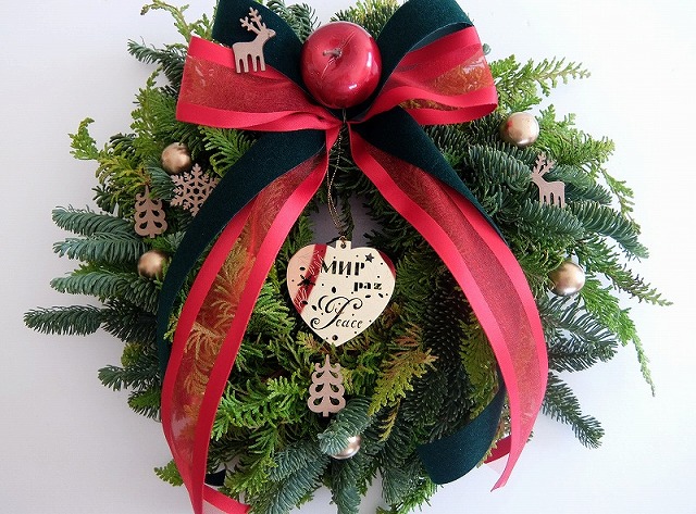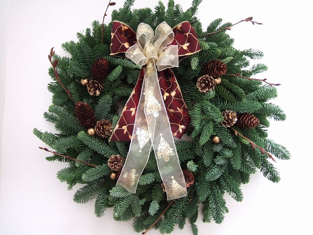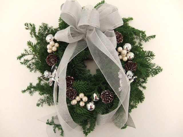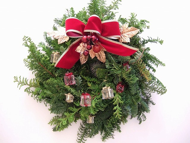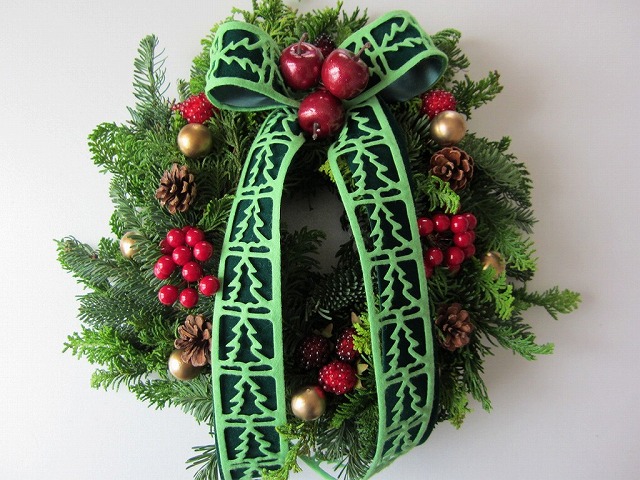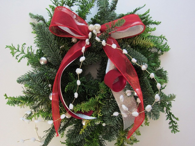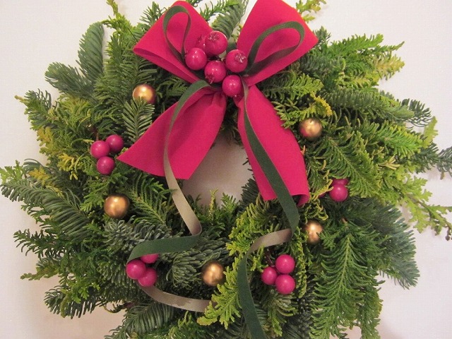 リース[編みリース] オレゴンモミの枝をつないで丸くします。オレゴンモミ ミニリース 簡単に作れるミニサイズ。オレゴンモミ、ヒバ クリスマス3 へ クリスマスギャラリー1 モミリース、ミックスリース クリスマスギャラリー2 編みリース、ミニリース クリスマスギャラリー3 ドアスワッグ、ミニドアスワッグ クリスマスギャラリー4 キャンドルスタンド、ほか