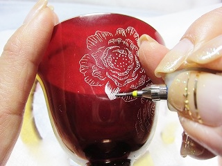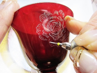 - チェコのエーゲルマン色被せガラスは被せ層が大変薄いので、透明ガラスと同じような感覚で彫ることができます。