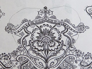 図案は器の形(ここでは鏡の形)に合わせてアレンジします。「レース模様」